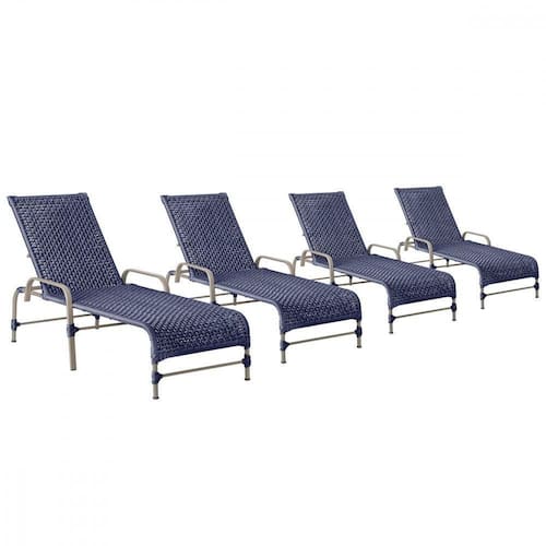 4 Espreguiçadeiras Reclinavel Catar Fendi Corda Nautica Azul