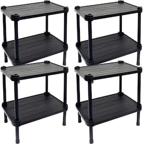 4 Estantes de Plástico Modular Multiuso 2 Prateleiras 1 Torre Preta Montável 26 Kg Qualyplas - Preto