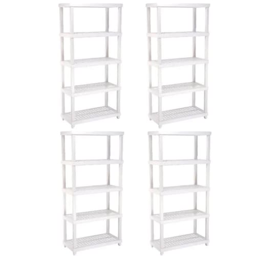 Garantia: 90 dias / Peso de cada: 8,519kgs / Cor predominante: branco / Referência: 7798140425847; Dimensões de cada: 42,2cm (C) x 86,3cm (L) x 180cm (A); Material: Polipropileno; Conteúdo da embalagem: 4 Estante 20 Prateleiras Plásticas Tubular.