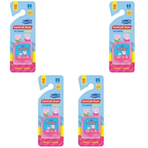 4 fio dental infantil - peppa pig - 25m - rosa - dentalclean 4 x fio dental infantil - peppa pig - tutti frutti - 25m - rosa - dentalclean O fio dental infantil peppa pig possui 25 metros e sabor tutti frutti, ideal para incentivar o hábito de usar fio dental desde pequeno. Este item foi desenvolvido para ajudar os pais a completarem a higienização bucal das crianças. O fio dental infantil deve ser utilizado preferencialmente antes da escovação, depois de cada refeição. No mínimo, é recomendado passar o item uma vez ao dia entre os dentes, na escovação noturna. Entre os dois e seis anos de idade, os dentes começam a se encaixar um do lado do outro o que aumenta as chances de restos de alimentos ficarem presos nos dentes. À medida que as crianças vão desenvolvendo suas habilidades, é indicado dar sequência ao hábito de modo independente. Geralmente, as crianças conseguem dominar o uso do fio dental por conta própria por volta dos oito anos de idade.