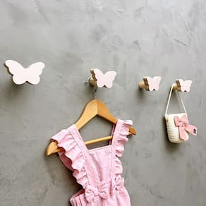 A face vai colada com super cola e acaba sendo apenas decorativa, pois é o suporte quem recebe o esforço, suportando até 5 Kg. Anúncio referênte à 4 unidades. Modelo: Borboleta Tamanho da face: 6,0cm X 4,0cm; Material: MDF laminado 15mm melamínico | borda cru Cor: Rosa, Azul, Branco e Cinza