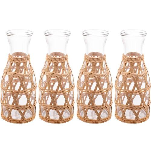 4 Garrafas de Vidro com Sisal 800ml Decorativas Wolff Jarro Vasos de Flores Enfeites de Mesa.
