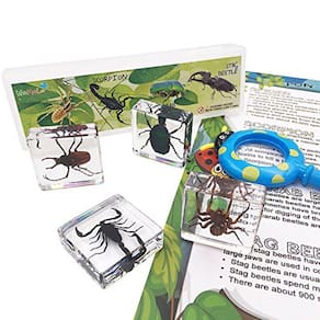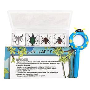 Observe que pode haver arranhões, pequenas bolhas e imperfeições no bloco acrílico, especialmente quando visto sob microscópio. Eles não estão preparados em padrões profissionais, mas são suficientes para jovens cientistas em descobertas. Consulte imagens do produto para obter visualizações reais do inseto sob microscópio. O conjunto vem com caixa de plástico e material de preenchimento para manter os blocos de insetos. Os quatro bugs estão claramente rotulados na capa do caso. Grandes ideias de presente científico para cientistas brotantes Existem vários desenhos de lentes de aumento: besouro, boleta, abelha. O design real e a cor da lente de ampliação são enviados aleatoriamente. Dimensão de cada bloco de resina: 1,5 x 1,5 x 0,5inDimensional de caixa plástica: 6,7 x 2 x 0,8in