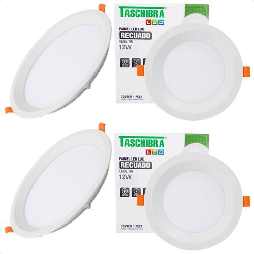 Kit 4 Painel de Led Redondo Embutir Recuado 12W Bivolt Taschibra 6500K Frio Características Gerais do Produto: Dimensões AxLxP CM : 1,6 x 12 x 12 Formato: Redondo Nicho do recorte CM : 11X11 Cor da luz: 6500K Frio Produzido em: Plástico de Engenharia, Anti-UV, Driver Onboard, Placa Interna em Alumínio e Componentes Eletrônicos Voltagem: Autovolt em 110v e 220V Alimentação: Energia elétrica Cor acabamento: Branco Potência: 12W Fluxo luminoso: 720 Lumens IRC: 80 Ângulo de abertura: 120 : 1 ano junto ao fabricante Aplicação: Embutir Vida útil: 20.000 horas Acompanha lâmpada: Não necessita, LED já integrado Grau de proteção: IP20 Ajuste de intensidade Dimerizar : Não Acompanha o produto: 04 Painel Led Completo : 1 ano junto ao fabricante Marca: Não Informado Ean: 7897050792138