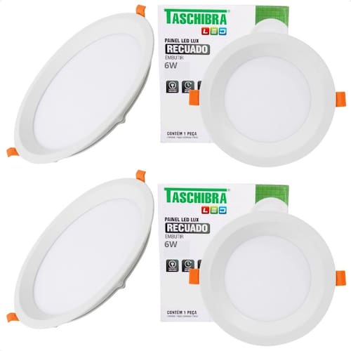 Kit 4 Painel de Led Redondo Embutir Recuado 6W Bivolt Taschibra 3000K Quente Características Gerais do Produto: Dimensões AxLxP CM : 1,6 x 9 x 9 Formato: Redondo Nicho do recorte CM : 7,5 X 7,5 Cor da luz: 3000K Quente Produzido em: Plástico de Engenharia, Anti-UV, Driver Onboard, Placa Interna em Alumínio e Componentes Eletrônicos Voltagem: Autovolt em 110v e 220V Alimentação: Energia elétrica Cor acabamento: Branco Potência: 6W Fluxo luminoso: 360 Lumens IRC: 80 Ângulo de abertura: 120 : 1 ano junto ao fabricante Aplicação: Embutir Vida útil: 20.000 horas Acompanha lâmpada: Não necessita, LED já integrado Grau de proteção: IP20 Ajuste de intensidade Dimerizar : Não Acompanha o produto: 04 Painel Led Completo : 1 ano junto ao fabricante Marca: Não Informado
