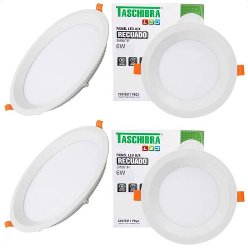Kit 4 Painel de Led Redondo Embutir Recuado 6W Bivolt Taschibra 4000K Neutro Características Gerais do Produto: Dimensões AxLxP CM : 1,6 x 9 x 9 Formato: Redondo Nicho do recorte CM : 7,5 X 7,5 Cor da luz: 4000K Neutro Produzido em: Plástico de Engenharia, Anti-UV, Driver Onboard, Placa Interna em Alumínio e Componentes Eletrônicos Voltagem: Autovolt em 110v e 220V Alimentação: Energia elétrica Cor acabamento: Branco Potência: 6W Fluxo luminoso: 360 Lumens IRC: 80 Ângulo de abertura: 120 : 1 ano junto ao fabricante Aplicação: Embutir Vida útil: 20.000 horas Acompanha lâmpada: Não necessita, LED já integrado Grau de proteção: IP20 Ajuste de intensidade Dimerizar : Não Acompanha o produto: 04 Painel Led Completo : 1 ano junto ao fabricante Marca: Não Informado