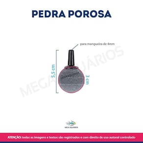Pedra porosa de Carborundum bola para aquário - potencializa a oxigenação e a criação de bolhasAnúncio referente ao kit com 4 unidadesA pedra porosa de Carborundum é um acessório essencial para qualquer aquário, projetada especificamente para auxiliar a oxigenação eficiente da água. Com sua estrutura porosa única, essa pedra proporciona uma dispersão uniforme de bolhas de ar, garantindo uma oxigenação ideal para seus peixes e plantas aquáticas.Características:Produção de bolhas que auxiliam na oxigenação da água Possui micro furos que distribuem por igual as bolhas de ar Melhora a qualidade da água: As bolhas de ar geradas pela pedra porosa com o auxílio do compressor de ar, ajudam a agitar a superfície da água, auxiliando na eliminação de resíduos indesejados, como detritos e toxinas, melhorando a qualidade geral da água.AtóxicoSegura para os peixesAltamente durável e resistenteFácil de usar e instalarCompatível com mangueira de ar de 4mmAlém do auxílio na oxigenação, ela gera um lindo efeito visual no aquárioComo instalar pedra porosa no aquário:A instalação da pedra porosa é simples e rápida. Basta conectá-la a uma mangueira conectada a um oxigenador e posicionar no local desejado dentro do aquário.Especificações:Marca: Mega AquáriosModelo: Pedra porosa S03 Material: Composto químico de silício e carbono. Conexão ponta de plástico Diâmetro: 3cmAltura total com a conexão: 5,5cm Peso: 21gCor: cinzaConexão de mangueira de ar: 4mmAplicação:Interação com enfeites de aquário Compressor / bomba de ar para oxigenação e produção de bolhas de arOxigenação de água em hidroponia Dicas de uso:1 - Para criar ambientes únicos em seu aquário, utilize enfeites que possam esconder a pedra porosa2 - Junto com a pedra porosa, ligue um torpedo de led ou spot de luz submerso ou anel de led submerso com um compressor de ar, isso deixará as bolhas com um lindo efeito iluminado. 3 - Para criar um abrigo / esconderijo para peixe iluminado, utilize rochas naturais e a cola para rocha OT Rock Glue OceanTech, insira a pedra porosa ligada a um compressor de ar e uma luz tipo anel de led. Manutenção:Limpar a cada 15 dias para manter a eficiência na produção de bolhasO que precisa para funcionar: Necessita a utilização de compressor bomba de ar e mangueira de ar de silicone de 4mmObrigado pela visita e boas comprasATENÇÃONossas imagens e textos são registrados e com direito de uso autoral controlado e reservado a essa loja e as lojas parceiras devidamente autorizadas em contrato. Marca: Mega Aquarios