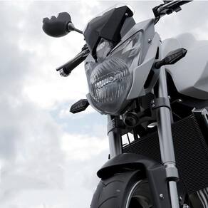 parafuso de encaixe: 10mm ligação: em 3 fios negativo fio preto, fio verde para luz traseira do pisca e para ligação da seta na cor laranja ambas sequenciais , fio vermelho luz branca. contém: 2 pares 4 peças material do produto: plástico e acrílico proteção do encaixe em borracha. aplicação do produto: todas as motos cor das luzes: led progressivo laranja, taseiro sequencial azul e luz branca. características do produto: chips de led dc12v a prova d'água: sim