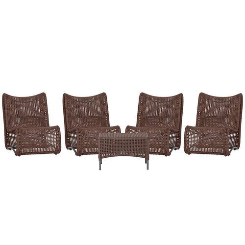 4 Poltrona e Mesa Texas em Alumínio Trama - Marrom Escuro