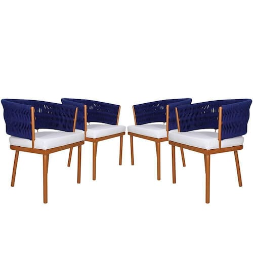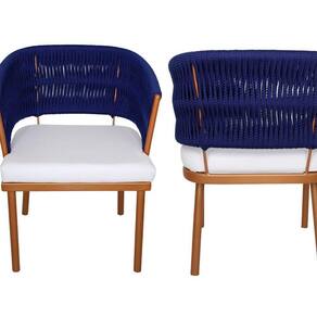 4 Poltronas California em Alumínio, Corda Náutica e Assento e Mesa com Tampo em Madeira Cumaru Trama