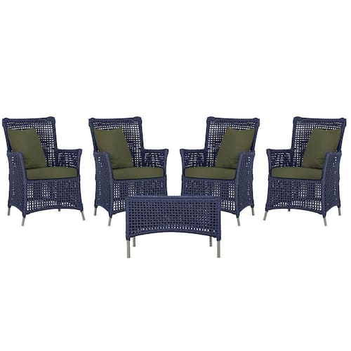 4 Poltronas E 1 Mesa Igapó Alumínio Fendi Corda Náutica E13 Azul