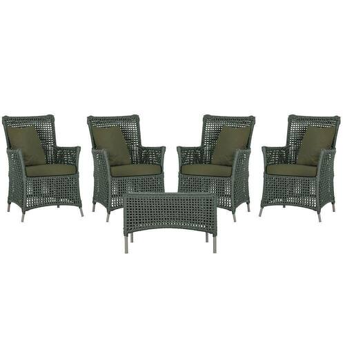 4 Poltronas E 1 Mesa Igapó Alumínio Fendi Corda Náutica E13 Verde