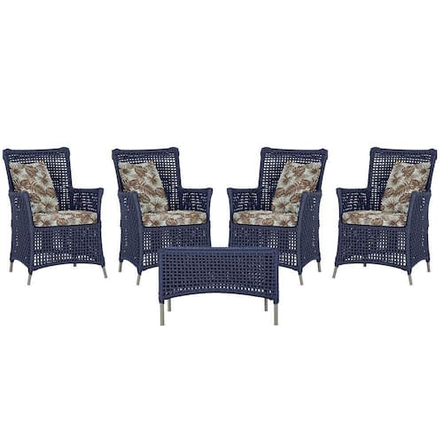 4 Poltronas E 1 Mesa Igapó Alumínio Fendi Corda Náutica E6 Azul