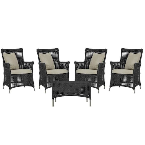 4 Poltronas E 1 Mesa Igapó Alumínio Fendi Corda Náutica E7 Preto