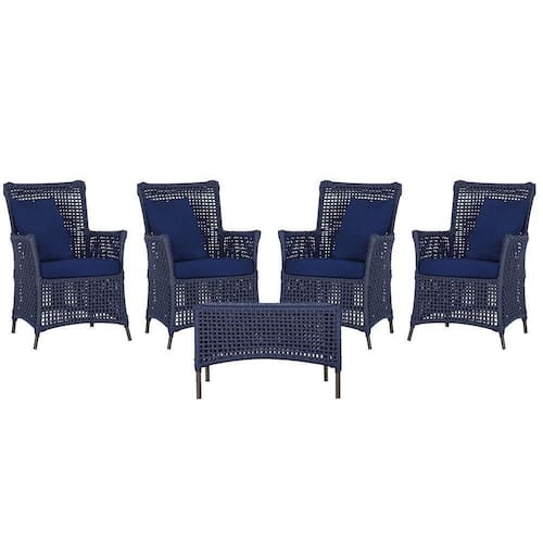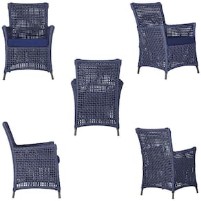 4 Poltronas E 1 Mesa Igapó Alumínio Marrom Corda Náutica E10 Azul