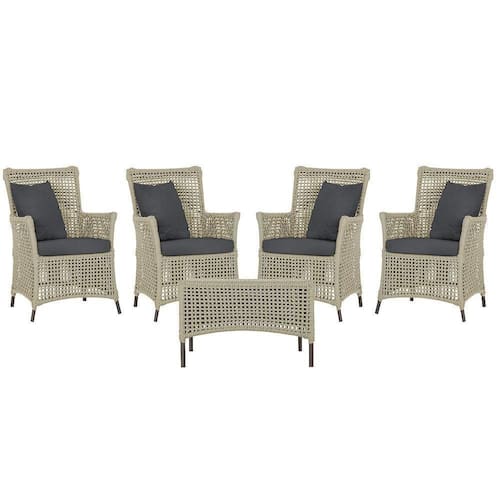 4 Poltronas E 1 Mesa Igapó Alumínio Marrom Corda Náutica E11 Rami
