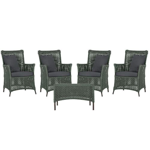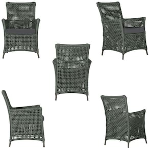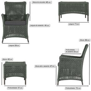 4 Poltronas E 1 Mesa Igapó Alumínio Marrom Corda Náutica E11 Verde
