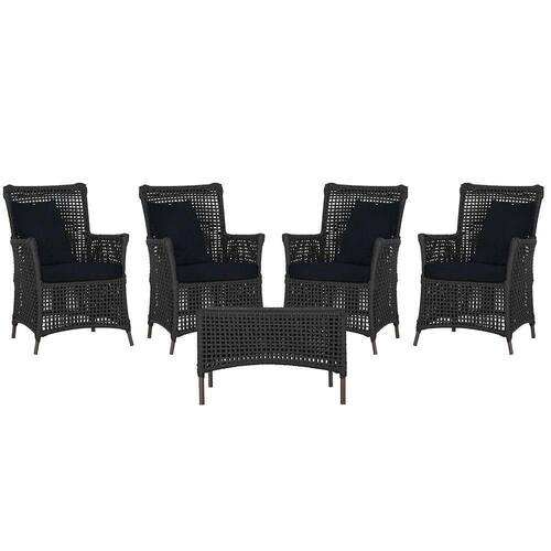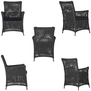4 Poltronas E 1 Mesa Igapó Alumínio Marrom Corda Náutica E12 Preto