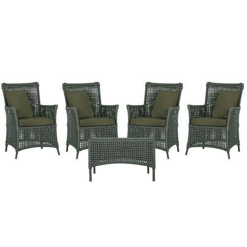 4 Poltronas E 1 Mesa Igapó Alumínio Marrom Corda Náutica E13 Verde
