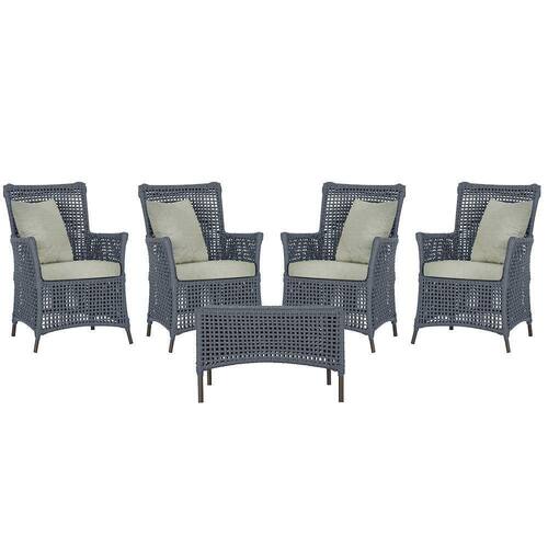 4 Poltronas E 1 Mesa Igapó Alumínio Marrom Corda Náutica E3 Prata