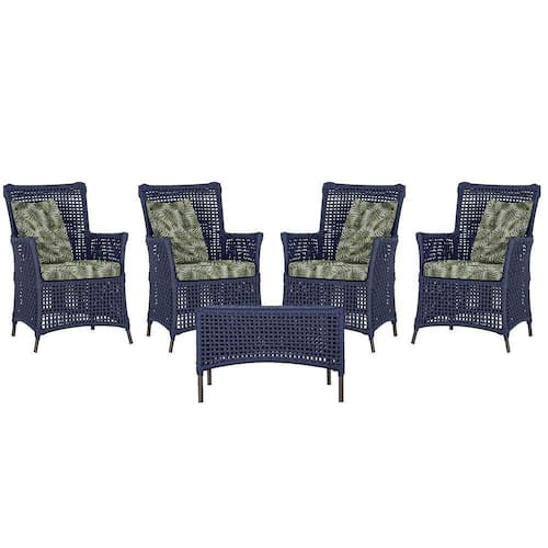 4 Poltronas E 1 Mesa Igapó Alumínio Marrom Corda Náutica E5 Azul