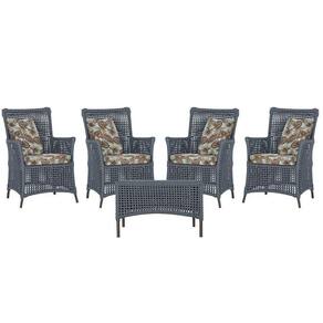 4 Poltronas E 1 Mesa Igapó Alumínio Marrom Corda Náutica E6 Prata
