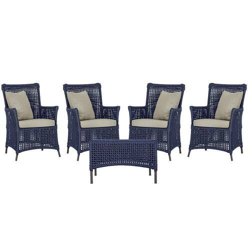 4 Poltronas E 1 Mesa Igapó Alumínio Marrom Corda Náutica E7 Azul