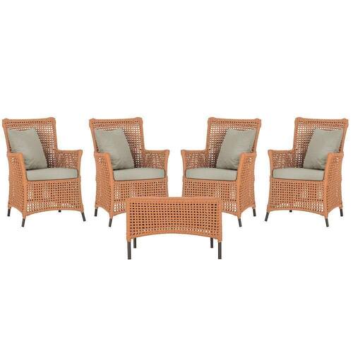 4 Poltronas E 1 Mesa Igapó Alumínio Marrom Corda Náutica E7 Terra Cota