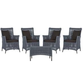 4 Poltronas E 1 Mesa Igapó Alumínio Marrom Corda Náutica E9 Prata