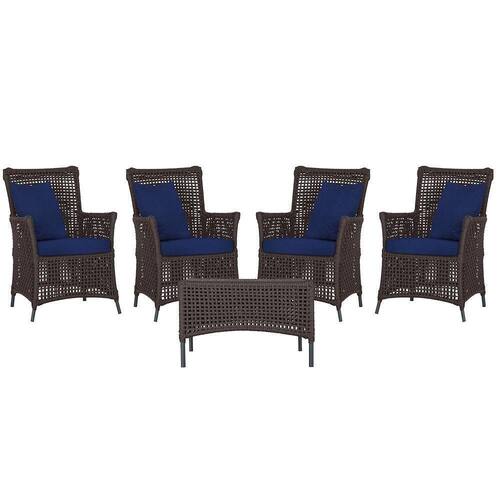 4 Poltronas E 1 Mesa Igapó Alumínio Preta Corda Náutica E10 Marrom