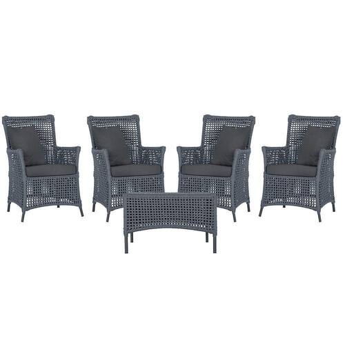 4 Poltronas E 1 Mesa Igapó Alumínio Preta Corda Náutica E11 Prata