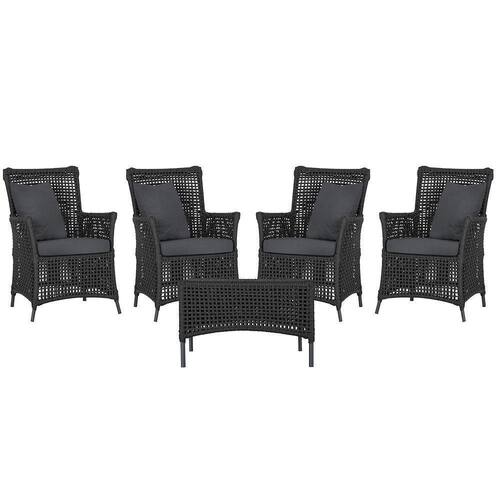 Itens Inclusos: 04 Poltronas e 01 Mesa Igapo em Aluminio Pintura Preta Corda Nautica Estofado 11