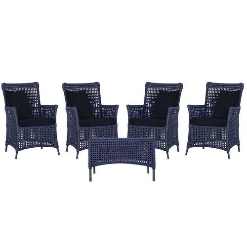 4 Poltronas E 1 Mesa Igapó Alumínio Preta Corda Náutica E12 Azul