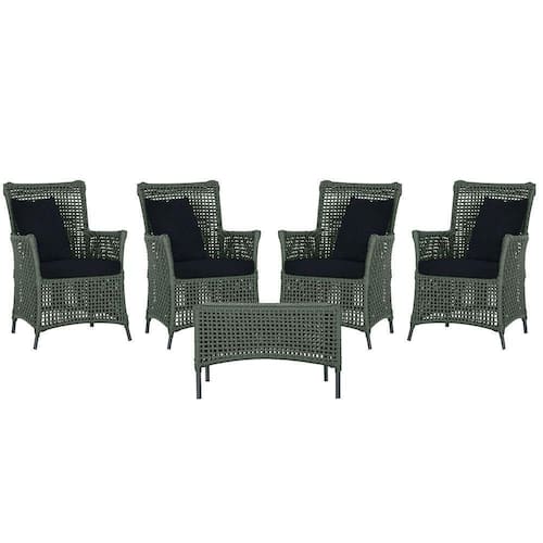 4 Poltronas E 1 Mesa Igapó Alumínio Preta Corda Náutica E12 Verde