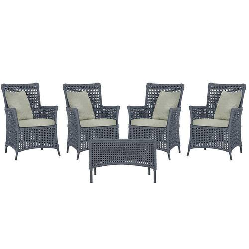 4 Poltronas E 1 Mesa Igapó Alumínio Preta Corda Náutica E3 Prata