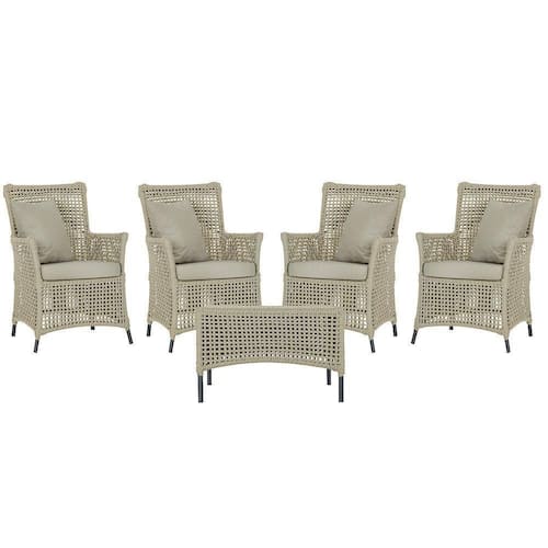 A corda nautica adiciona um toque de rusticidade moderna, enquanto o estofado impermeavel garante que sua poltrona esteja sempre impecavel, mesmo apos uma chuva inesperada ou um acidente com liquidos.