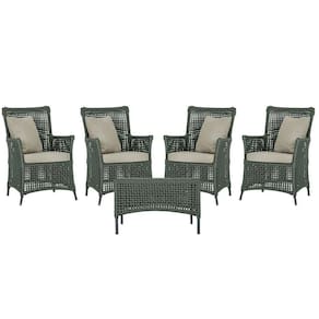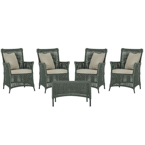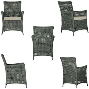 4 Poltronas E 1 Mesa Igapó Alumínio Preta Corda Náutica E7 Verde