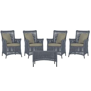 4 Poltronas E 1 Mesa Igapó Alumínio Preta Corda Náutica E8 Prata - Preto