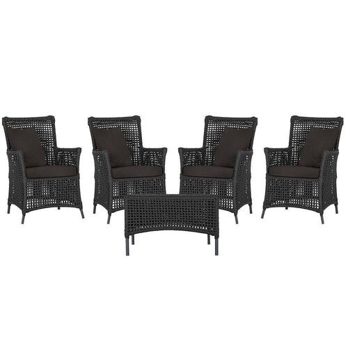 4 Poltronas E 1 Mesa Igapó Alumínio Preta Corda Náutica E9 Preto