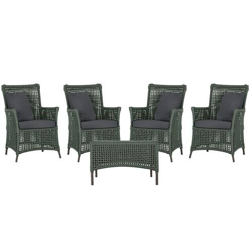 4 Poltronas e 1 Mesa Igapó em Alumínio Pintura Marrom Corda Náutica Estofado 11 - Verde