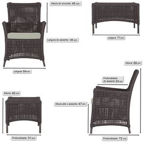 4 Poltronas e 1 Mesa Igapó em Alumínio Pintura Marrom Corda Náutica Estofado 3 - Marrom Chocolate