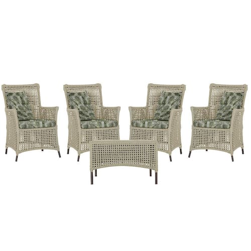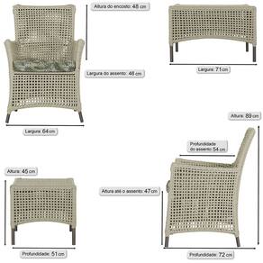 4 Poltronas e 1 Mesa Igapó em Alumínio Pintura Marrom Corda Náutica Estofado 5 - Bege