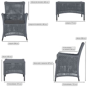 Itens Inclusos: 04 Poltronas e 01 Mesa Igapó em Alumínio Pintura Preta Corda Náutica Estofado 11