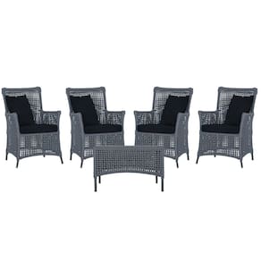 Itens Inclusos: 04 Poltronas e 01 Mesa Igapó em Alumínio Pintura Preta Corda Náutica Estofado 12