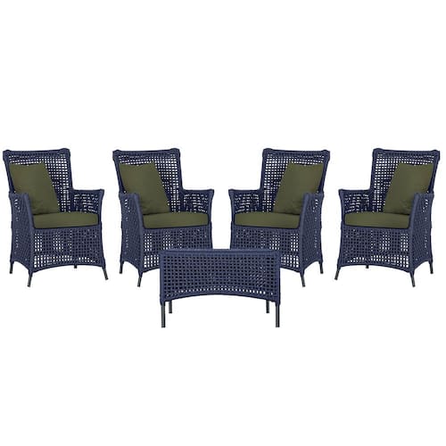 4 Poltronas e 1 Mesa Igapó em Alumínio Pintura Preta Corda Náutica Estofado 13 - Azul