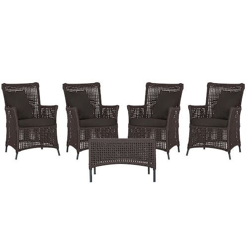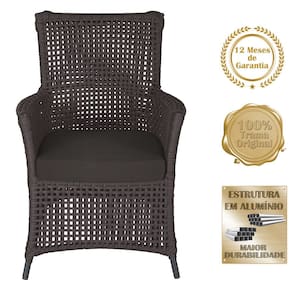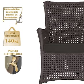 4 Poltronas e 1 Mesa Igapó em Alumínio Pintura Preta Corda Náutica Estofado 9 - Marrom Chocolate