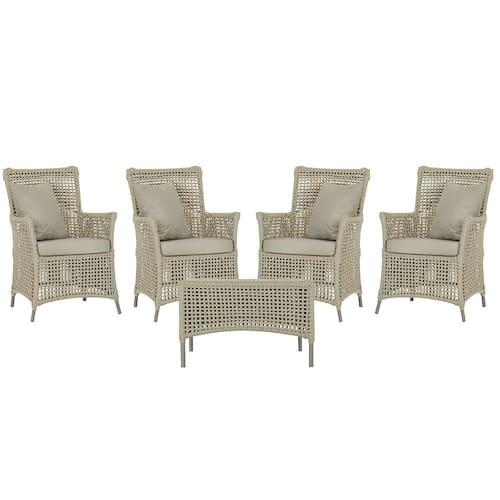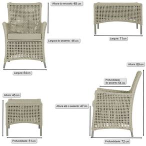4 Poltronas e 1 Mesa Igapó em Alumínio - Bege