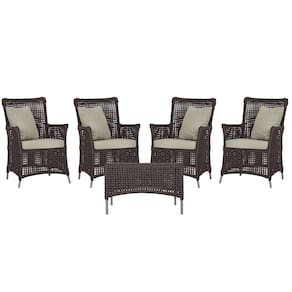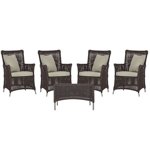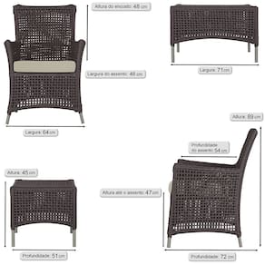 4 Poltronas e 1 Mesa Igapó em Alumínio - Marrom Escuro