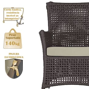 A corda náutica adiciona um toque de rusticidade moderna, enquanto o estofado impermeável garante que sua poltrona esteja sempre impecável, mesmo após uma chuva inesperada ou um acidente com líquidos.