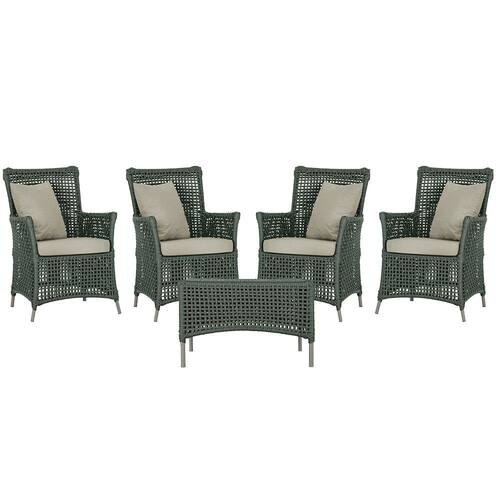 4 Poltronas e 1 Mesa Igapó em Alumínio - Marrom